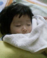 |  |  今日は一日“ガーガー”と工事の音がすごく、お昼の後、「この音じゃ、お昼寝できないね」と言いながらゴロゴロ横になっていたら、依亜はタオルを顔にかけ眠っていました。