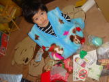 |  | 依亜、9時起床。机の上のたくさんのプレゼントを見た依亜はビックリ!「アンパンマンだぁ〜」と言ってから、次々とプレゼントを開け、どのプレゼントも大喜び♪