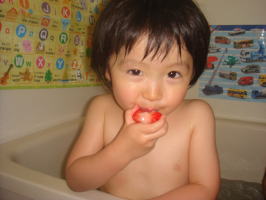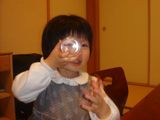 依亜は“クー(=オレンジジュース)”がお気に入り。今夜、帰宅してから、 「みんなで“クーちゃん”飲もう!」と言い、一口飲むと「クー!」と言い笑顔。