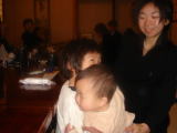 |  |  雪が降りそうなほど寒い寒い今日、ママ曾ババの四十九日法要でした。曾ババのお家にはママ叔母(キヨコさん)、ママ叔父、いとこのメグちゃん(メグちゃんははるばる沖縄から駆けつけてくれました)、が前日から来てくれていて、今朝はいとこのケンちゃん夫妻とミナちゃん(もうすぐ1歳)が来てくれていました。依亜はミナちゃんを見ると「赤ちゃん!」と嬉しそうで、持参したおもちゃを出して、ミナちゃんにお近づき。 その後、ママババ、葬儀では喪主をつとめたママ叔父夫妻、恭子お姉ちゃんが到着したところで近くのお寺へ移動。