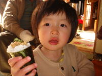 |  買い物へ行く前、依亜が「納豆巻き、食べたい」と言いました。今日は天気良く暖かだったので、納豆巻きを持って公園へ行こうと思っていたら、買い物をして家に着くなり、「納豆巻き、食べる!」と言い、パクパクとたっぷり平らげました。それから、小さな公園で砂遊びとシャボン玉をしました。