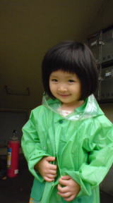 |  |  昨夕からの雨があがらなかったのですが、お昼前、3人で傘をさして(依亜は合羽も着て)、スーパーマーケットへ。買い物を終え、スーパーを出る時には雨があがっていました。夕方は依亜とパパ、外でシャボン玉をして楽しんでいました。