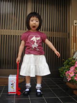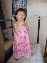 濡れた床を拭いて、トイレへ連れて行くと、「気持ち悪いから、お着替えしたい」と依亜。近くの子供服屋さんで、依亜の選んだパンツとスカートを買って着替え。。。そんなことでバスに乗り遅れ、次のバスに乗って帰宅したのでした。