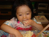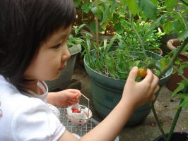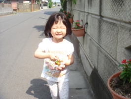 |  | ママ→筋肉痛で体が痛い。昨日、あんなに走ったのは何年、いや、何十年ぶりだったでしょうか?依亜→朝、ママババの育てている“ミニトマト”を収穫し、早速、食べていました。