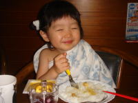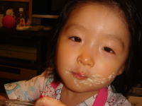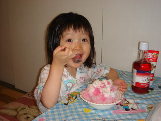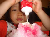 お夕飯後、依亜はパパとお風呂に入り、今年初の“かき氷”!とても喜んでいました。