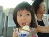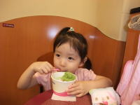 「お弁当っておいしい〜」と言って喜ぶ依亜。夕べの残り物をお弁当箱に詰めただけなのに・・・公園じゃないのに・・・“いっち、ごめんね。ありがとう”と心の中で何度も思いました。屋上の滑り台は熱くて遊べず、帰りはアイスクリームを食べて帰宅しました。