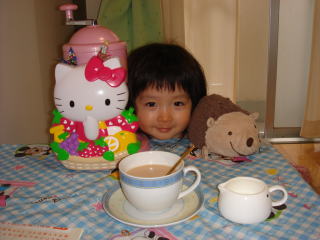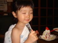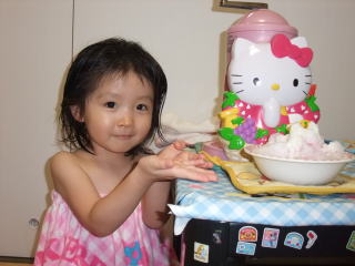 棚からこのかき氷機が見える度、「キティちゃん、早く出てこないかなぁ・・・」と待っていた依亜だったので、今夜のかき氷は本当に嬉しそうでした。