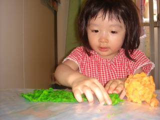 お昼は、ママがお昼を用意している間、依亜とパパは粘土遊びをしていました。