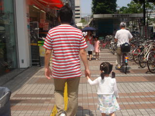 |  |  本日の予定はパパとママでA市へと向かい、依亜はママ実家でお留守番。朝、バス停で依亜と恭子お姉ちゃんが見送ってくれました。お姉ちゃんは3日後に引っ越してしまうので、パパとはここでバイバイです。バスに乗る前、パパとお姉ちゃんは握手。 (後でお姉ちゃんがメールでママに教えてくれましたが、パパとバイバイの時、泣きそうだったと。お姉ちゃんは泣き虫なんです。)