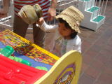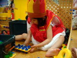 |  |  10日前に行った“あそびのせかい”へ。12時少し前に着いたのですが、先日よりも混んでいました。しかし、12時になるとだいぶ空いてきました。依亜は先ず、“ハチさん”らしき衣装を身につけると、嬉しそうに動き出しました。いつものように、飛んだり跳ねたり、おままごとや積み木で遊び、ここを脱出するタイミングはいつも難しい・・・ママは60分と決めていますが、今日は70分遊んで出ました。