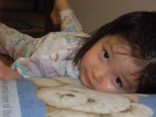 依亜は鼻水が出ていて優れない様子でしたが、夕べはお姉ちゃんが体調の悪い依亜を心配し、あまり寝ないで依亜を看ていてくれたようです。