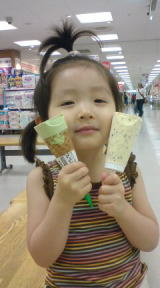 依亜は咳も鼻水もややおさまった感じですが、完治するまでは外出を控えようと、近所のスーパーマーケットだけ。しかし、暑い!!夕方、またスーパーマーケットへ涼みに行っちゃいました。