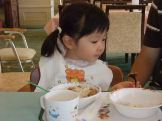 パンフレットを買って映画館を後にし、お昼へ。焼きたてパンが食べ放題のおいしいレストランへ、パパが案内してくれました。お食事もおいしく、パンもたくさん食べてお腹いっぱい。依亜は眠ってしまったので、パパとママは引き続き、このレストランでお茶を飲みながらのんびりしました。