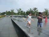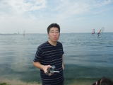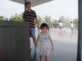 |  |  ママは8時半まで寝ていて、依亜も間もなく起きました。朝はゆっくりして、近くの朝市を見た後、今日はタカさんの勤務先である“空港”へ。空港へ向かう途中、美しい海岸に立ち寄りました。9月半ばではありますが、まだまだ暑い・・・