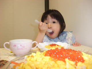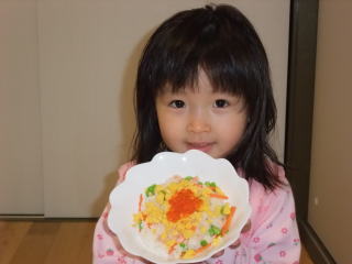 お夕飯は“ちらし寿司”を作り、ひな祭りをお祝いしました。