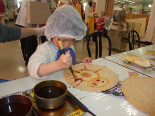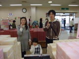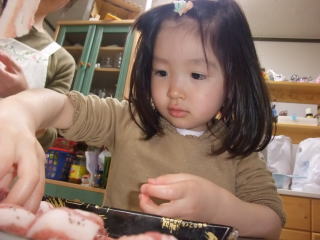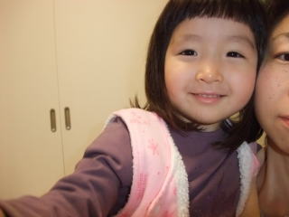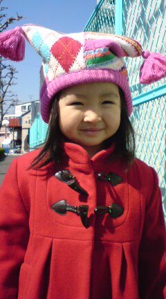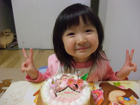 |  |  ひな祭り。一昨日、ちらし寿司でお祝いはしたけれど、今日はケーキでお祝いです。午前中、依亜の好きなTV番組『バニータウン』を見終え、ペコちゃんのケーキ屋さんへ。依亜はホワイトチョコレートのケーキを選びました。パパへ、“今日はひな祭りでケーキを買ってあるから、早く帰ってきて!一緒に食べようね”とメールを送りました。