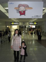 さて、駅でパパを見送った後は、空港へ向かいました。夕方、ママババが来るのです!ババの到着を待っていると、手荷物を受け取るところにババの姿を発見。しかし!ババは違う航空会社の手荷物受け取りの前で待っているのです。ババは遠くから我々4人の姿が確認でき、手を振っています。お姉ちゃんとママはババの携帯電話に何度もかけて教えようとしたのですが、ババは電話に気づかず。依亜、お姉ちゃん、ママが大きな声でババを呼んでも聞こえない・・・