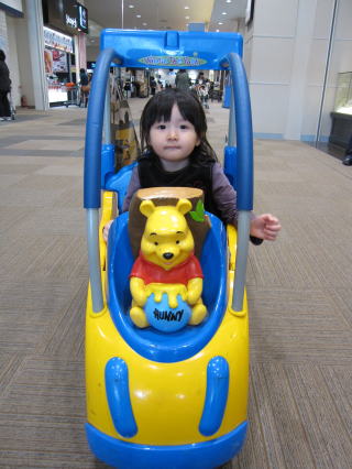 パパも間もなく来て、ショッピングモールへ行きました。しかし、休日のショッピングモールはとても混んでいて、お昼には遅い時間というのにお店は行列。仕方なく、食料品売場でお昼を買い、座るところを見つけ、そこで食べたのでした。その後、依亜を遊ばせ、お店を見て歩き、帰宅をしました。