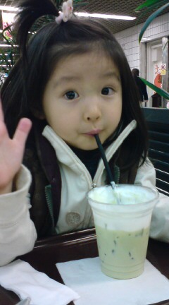 最初の内は頑張って付き合ってくれた依亜ですが、だんだん飽きてきて、「帰ろう、帰ろう」と言い出しました。結局、ママは依亜を外に出し、駅前のファストフード店でパパが終わるのを待つことにしました。