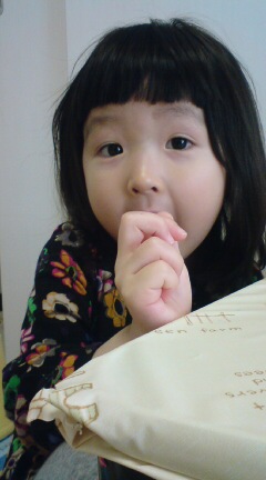 パパが真夜中に帰宅。すると、依亜がハリコを抱いて、「おとさんのご飯のおてつ(=お手伝い)する」と起きてきてしまいビックリ。すぐにお布団へ行かせ、ママも一緒に横になったのですが、すぐには眠りませんでした。