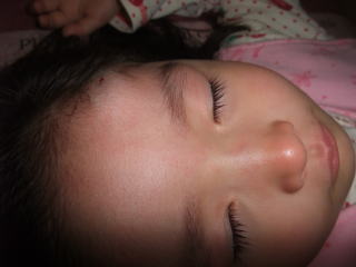 寝る前、依亜がおふざけでパパによじ登り、パパもテレビを見ながらで依亜を支えるのが間に合わず、依亜は重くて硬いテレビ台におでこをぶつけ大泣き。案の定、おでこには大きなこぶと少しの出血。こぶの大きさにビックリのママ。すぐに依亜を横にして冷やしました。落ち着いて、ココアを飲んで、DVDを見て、本をたくさん読んでもらい、いつもの元気な依亜に戻っておやすみなさいとなりました。