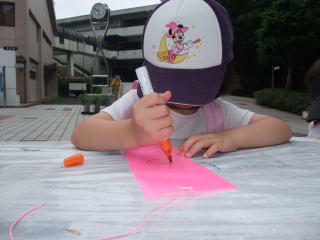 |  |  今日は保育参加、母子で風鈴を作りました。ママは案の定、悪戦苦闘。ママが手間取っていると、依亜はすぐY先生を呼んできて助けていただき、予定時間をかなりオーバーしたのですが、何とか出来上がりました。この風鈴、8/21の夕涼み会で飾ってくれるそうです。