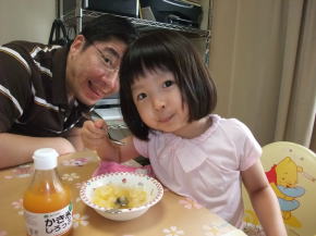 お昼は近所のラーメン屋さんへ。ママ、ラーメンを食べられるか心配でしたが、美味しく食べられました。しかし、お夕飯前には気持ち悪くなり(やはりラーメンがいけなかったかも)、依亜&パパとは別メニューの冷たいおうどんを食べました。