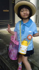 |  |  雨の朝。依亜は終業式です。一学期、アッという間に終わってしまいました。登園時、雨がちょうどあがったのですが、歩いて行きました。Y先生へ、普段はなかなかきちんとお礼を言えないものなので、昨日、依亜と手紙を書いたので、今朝、先生に渡しました。