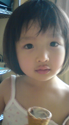 ここのところ、依亜のおやつはアイスが多いです。ママの一緒にいただきます。