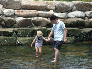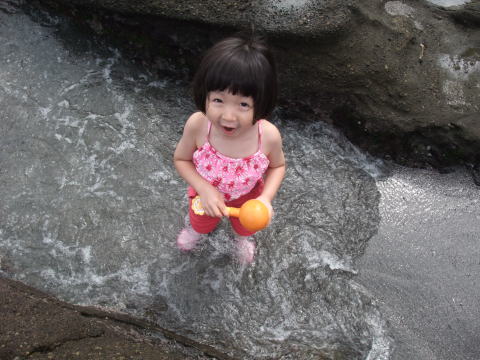 お昼を食べた後、ユウタ君、トモ君、Tちゃんと一緒にお買い物へ。買い物後、Tちゃんがステキな水辺に案内してくれました。水の流れる音が心地良く癒される場所なのですが、依亜は早速パンツになり水の中へ。残念ながら、水の苦手なユウタ君は一緒に入ることができなかったのですが、チビッコ2人は楽しそうに遊んでいました。