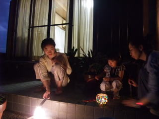 |  |  9時半頃、コウ君・ユウ君・ヒデちゃん・アキちゃん一家がケーキを持って来てくれ、ケーキを早速ごちそうになりました。帰る時間まで、依亜はコウ君・ユウ君と遊び、最後は”依亜が大好きな”全員集合写真を撮り、コウ君・ユウ君・ヒデちゃん・アキちゃん一家が駅まで送ってくれ、バイバイしました。