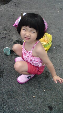 |  |  依亜は午前中、暑い中、パパと外で遊んでいました。