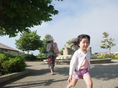 お昼は依亜のリクエストで回転寿司へ。ここでもママはお茶が美味しくかったのですが、お寿司はあまり食べられませんでした。食後、回転寿司から近いおもちゃ屋さんで依亜を遊ばせることに。しかし、ママは頭が痛く、とても一緒に付き合えないので、ベンチに座って待っていることにしました。お腹も頭も少し痛く、ベンチに横たわりたい気分でした。飲み物をすぐそこの自動販売機で買いたかったけれど、立ち上がる気力もなく、ただただ座って日陰で風に当たっていました。