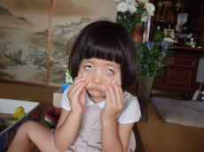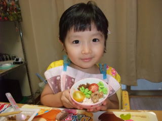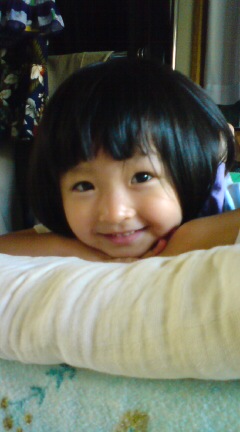 |  |  6時、ママ起床、パパのお弁当を作りました。パパは夏休み終わり、今日からお仕事でしたが・・・「いっちが最後の夏休みだし、おとさん、風邪で熱もあるからなぁ」・・・というわけで、パパ、今日はお休みしちゃいました。しかし、台風接近の悪天候のためどこへも行かず、三人お家でダラダラダラダラ・・・  お昼の後は、三人でお昼寝をしてしまいました。そのため、依亜は消灯後、なかなか眠れないようでした。