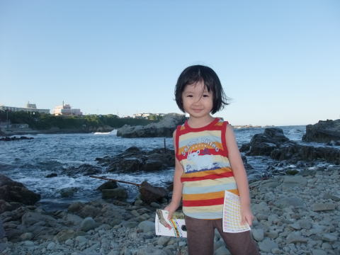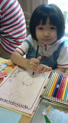 |  |  雨。午前中は依亜が幼稚園へ提出するもので、夏休みの宿題のようなものを三人でやりました。依亜は“夏休みの思い出”の絵を描き(シーパラダイスの絵を描いていました)、パパは夏休みの思い出写真をたくさん貼り付け、ママはコメントを書きました。