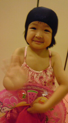 依亜とママはプールへ。このプールは屋内ですから、ママは日焼けを気にせず依亜に付き合えます。けっこう混んでいたプールでしたが、依亜はとても楽しんでくれました。