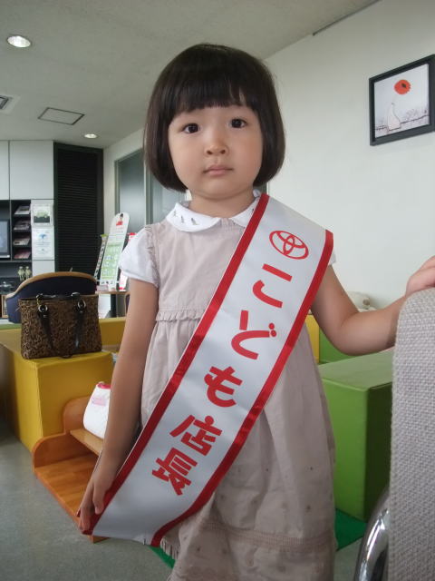 車の点検中、社員の方がチビッコの依亜に声をかけてくれ、イベント中の『一日店長』の写真を撮ってくださいました。点検には時間がかかりましたが、依亜の遊ぶスペースもあり、飽きることなく付き合ってくれました。