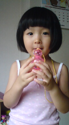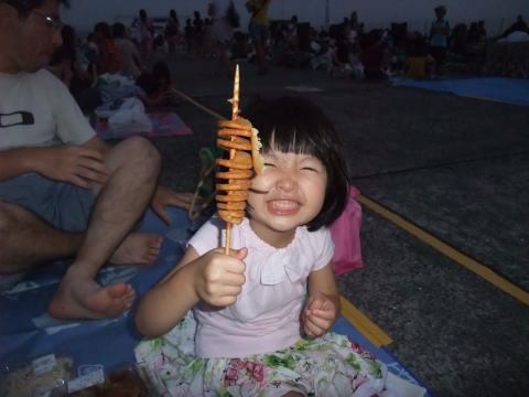 花火が終わり、タマちゃんママがチビッコたちにゼリーを配ってくれました。依亜はゼリーを食べないのですが、今夜は「食べる!」と。依亜がゼリーを初めて食べました!!グレープゼリーでした。「おいしいかった」と。やっぱり、お友達と一緒だと、食べてみようと思うのかな?この調子で、お給食も頑張れるといいんだけどね。