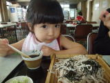 お昼はパパが案内してくれた食堂。この食堂、肉体労働者の方が常連としているお店なのか?とにかく、定食のボリュームがすごくて驚きました。そして、エアコンが寒い位に効いていて、風邪ひきの依亜はカーディガンを着てバスタオルを羽織っていても、「寒い、寒い」と。そのため、ラーメンを頼みました(パパはからあげ定食)。ラーメンも定食もとってもおいしかったのですが、定食は食べきれませんでした。お腹いっぱいの帰路、依亜とママはぐっすりでした。
