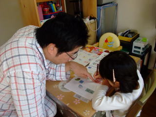 |  |  午後から、電機屋さんと家具屋さんへお買い物。依亜はいよいよ“ひらがなドリル”を購入。電機屋さんに入っていた本屋さんで、依亜とパパは熱心にドリルを選んでいました。帰宅後、早速、2ページお勉強をした依亜。