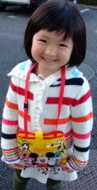 |  |  今日は寒いというより冷たい。パパは仕事で現場(外)へ行くということなので、ももひきを履いて出勤しました。依亜もレギンスにホットパンツの重ね履きし、自転車では襟巻きにストール、手袋も。