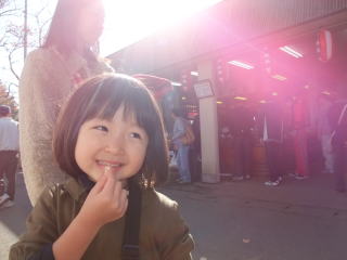 12時半過ぎ、パパから終了の連絡あり、人気のたい焼き屋さんで待ち合わせ。行列のたい焼き屋さんに並びました。