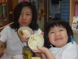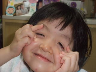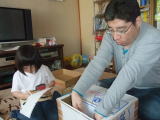 依亜とパパはすぐにシャワーを浴びてサッパリ。お夕飯後は三人でトランプをしました。