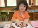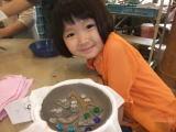 また、体験コーナーでは、依亜とパパでお皿をつくりました。このお皿は焼いて完成するので、7月にまた完成したお皿を取りにくるので、また楽しみができました。