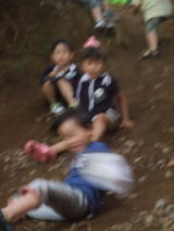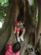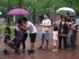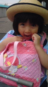 というわけで、小雨降る中(雨はあがる予報でした)、依亜にはレインコートを着せ、パパとママは傘も持たず、早朝からの出発となりました。電車での長旅・・・依亜は行き先がわからず、「大きい公園って、どこ?」