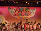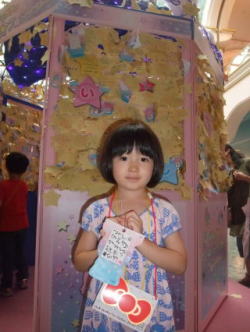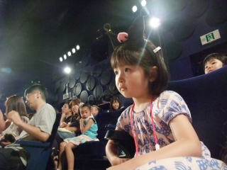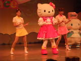 その後、本日の一番の目的、『キティズパラダイス』の公開録画へ。チビッコは皆ステージでキティちゃんやシナモン、アシスタントのお姉さん二人と一緒に踊ることができます。ステージ上で依亜はあちこちフラフラした結果、一番後ろでパパやママは依亜をなかなか発見できず・・・