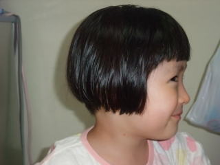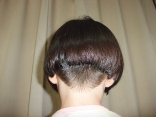 依亜自ら「ワカメちゃんにしてください」とオーダーし、理容師(美容師?)さんは戸惑ったようですで・・・ちょっと遠慮がちな“かりあげ”となりました。
