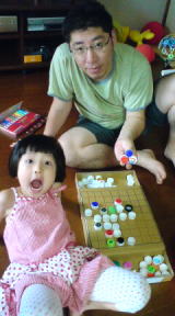 |  |  依亜、夏期保育2日目・しゃぼん玉です。ママは9時前に病院だったので、依亜の幼稚園への送りはパパが担当。