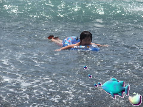 海には二時間位いました。依亜は唇が紫色になってもなかなかあがらず・・・