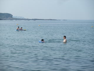 ママ実家にある海岸とは全く違うパパ実家の海岸は、水もキレイで景色も素晴らしい!!今日も天気良く、陽射しも強く、暑い!まさに、海水浴日和です。